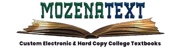 Thank you for visiting our website and using MozenaText, Inc., a privately-held educational publisher, specializing in hard copy and electronic custom college textbooks, also known as class readers, packets or manuals, created by college and university professors for their students and college courses since 1988.